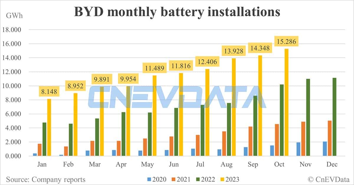 BYD battery installations in Oct: 15.286 GWh