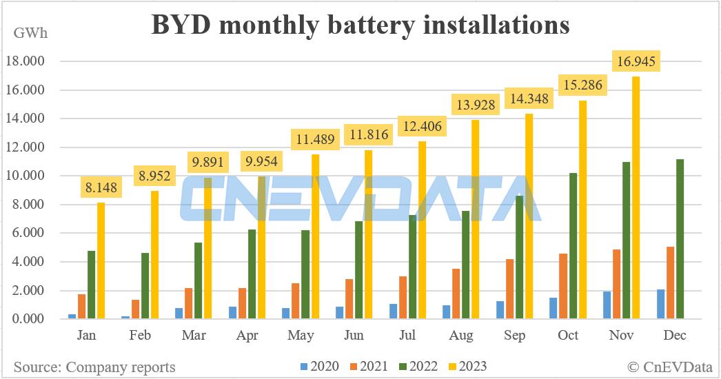 BYD battery installations in Nov: 16.945 GWh