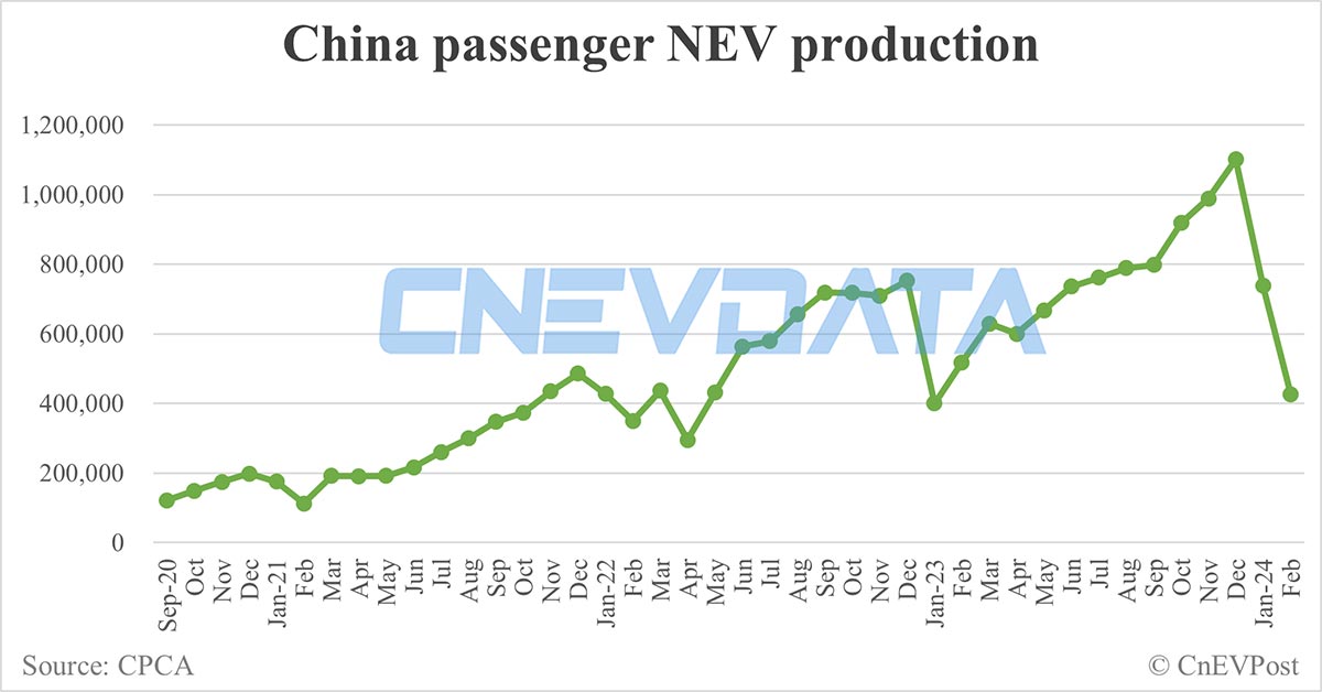 China Feb NEV production data by CPCA: 426,000