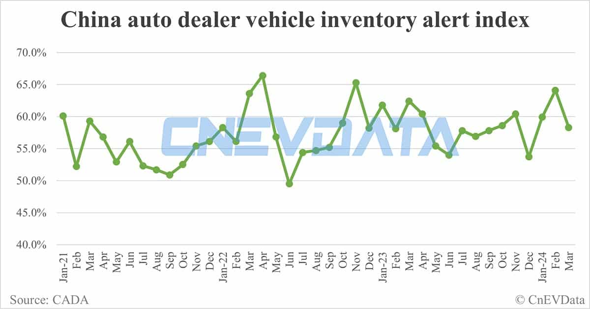 China vehicle inventory alert index falls to 58.3% in Mar