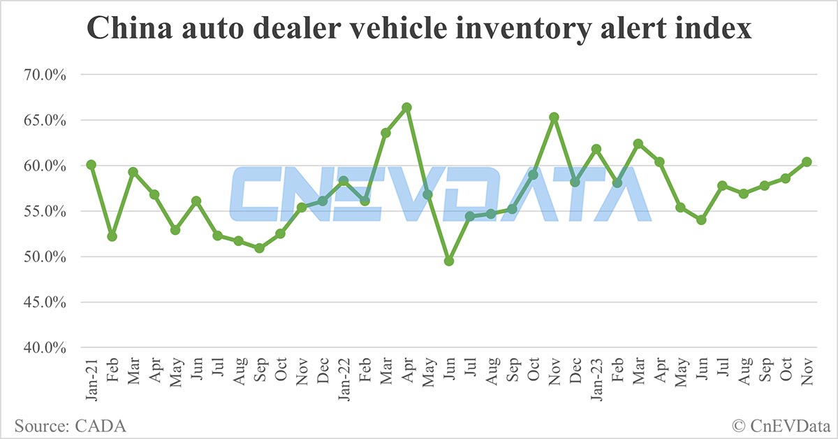China vehicle inventory alert index rises to 60.4% in Nov