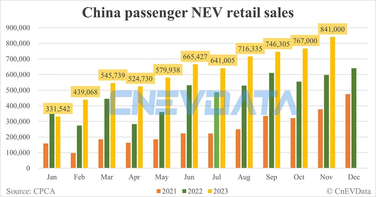 China Nov NEV retail data by CPCA: 841,000