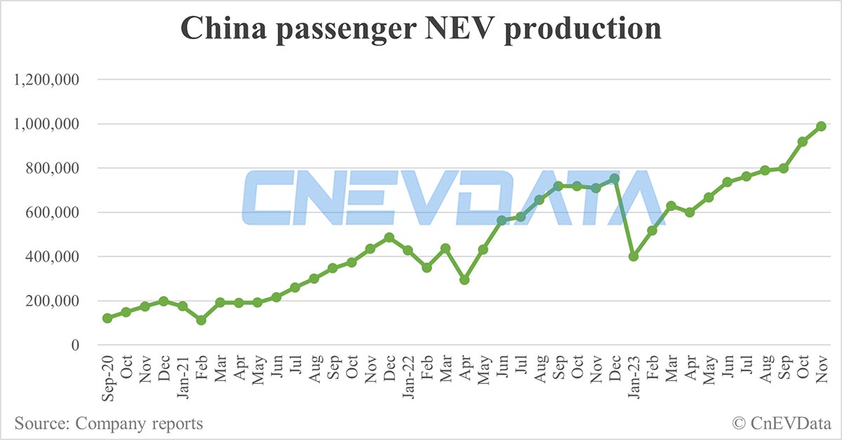China Nov NEV production data by CPCA: 989,000