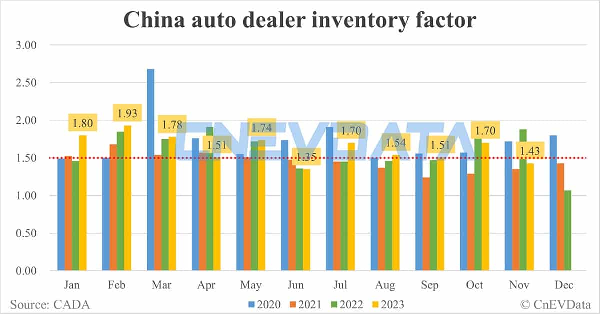 China auto dealer inventory factor at 1.43 in Nov, below alert line