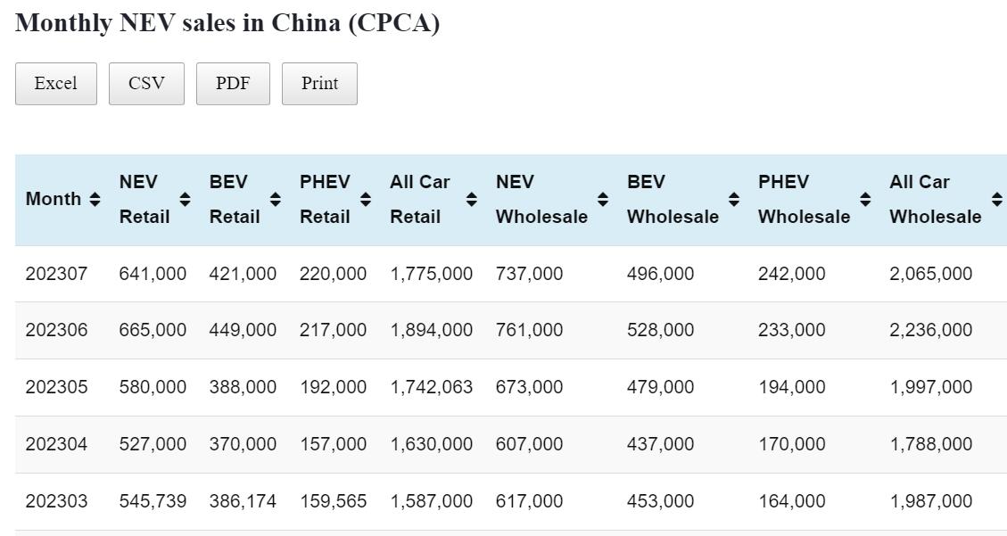 China Jul NEV retail data by CPCA: 641,000