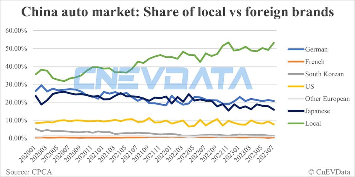 Local brands' share of China auto market at 53.19% in Jul
