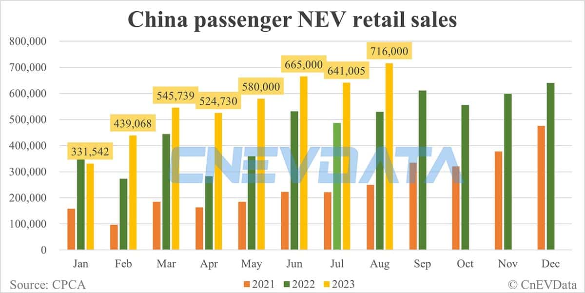 China Aug NEV retail data by CPCA: 716,000