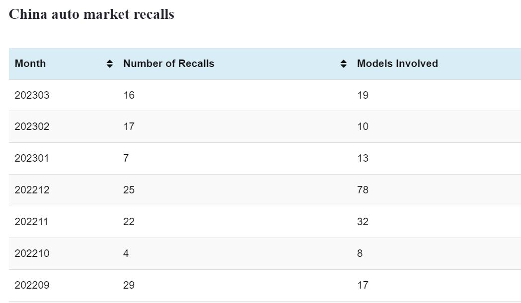 China's auto market sees 16 recalls in Mar