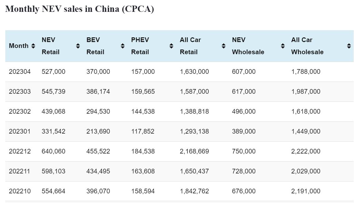 China Apr NEV retail data by CPCA: 527,000