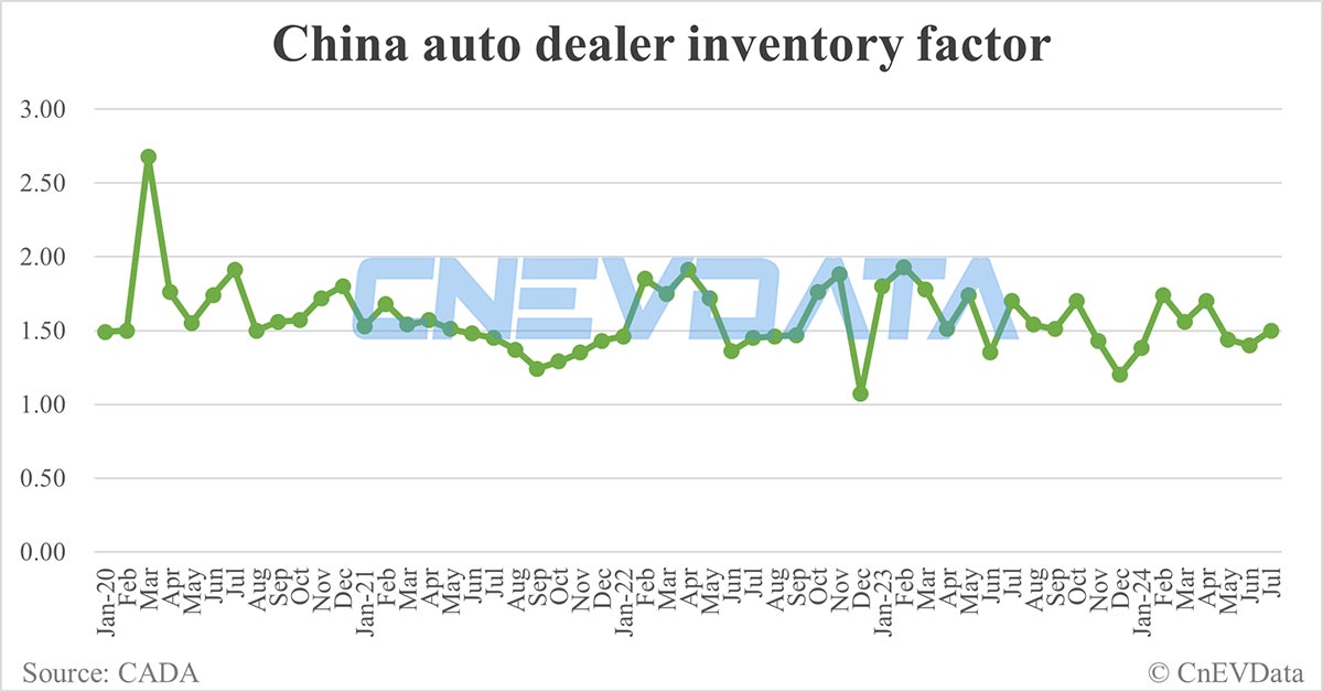 China vehicle inventory alert index lowers to 59.4% in Jul