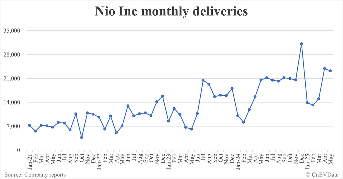 From January to May, Nio Inc delivered 89,225 vehicles, a year-on-year increase of 34.75 percent.