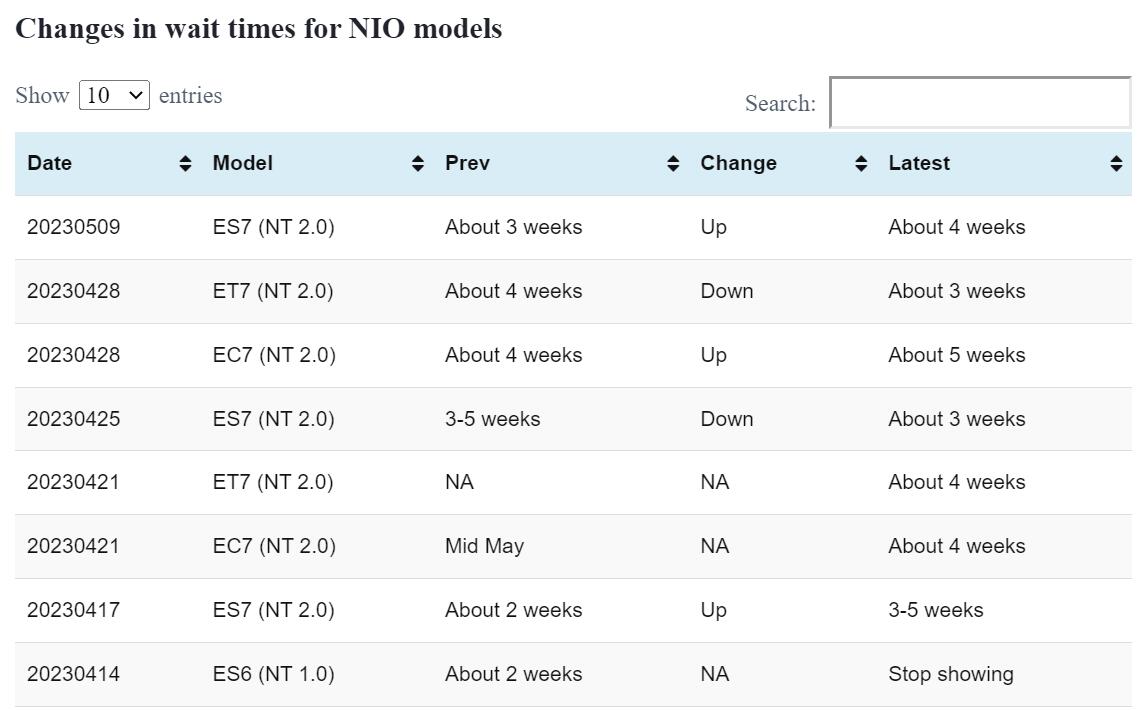 The wait time for the NIO ES7 became slightly longer on May 9, going from about 3 weeks to about 4 weeks.