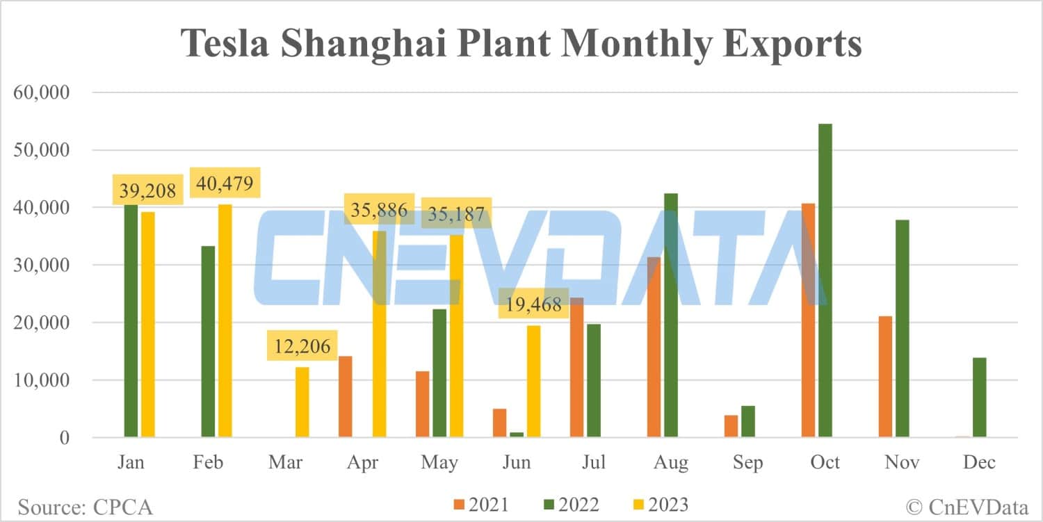Tesla Shanghai plant exports in Jun: 19,468