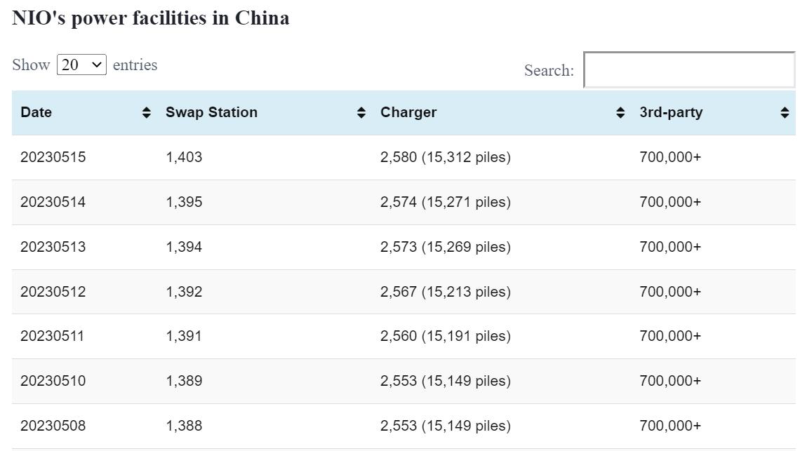 As of May 15, NIO had 1,403 battery swap stations and 2,580 charging stations in China.