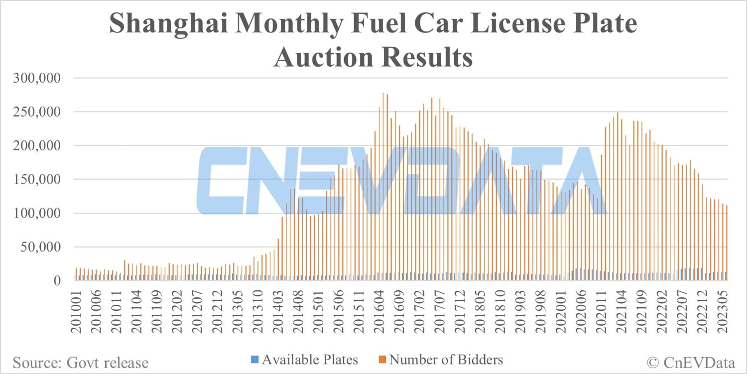 Shanghai fuel car license plate bidders fall further to 111,648 in Jun