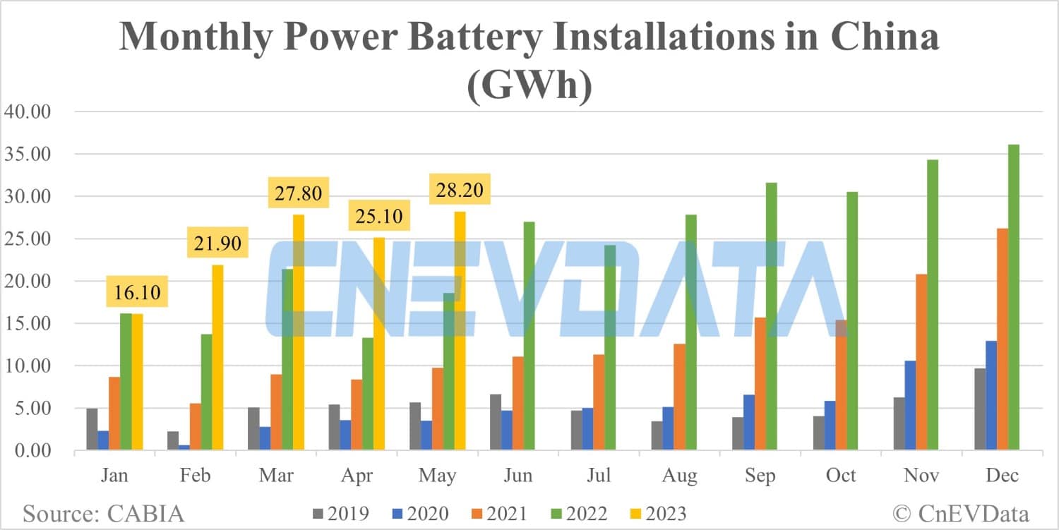 China EV battery installations in May: 28.2 GWh