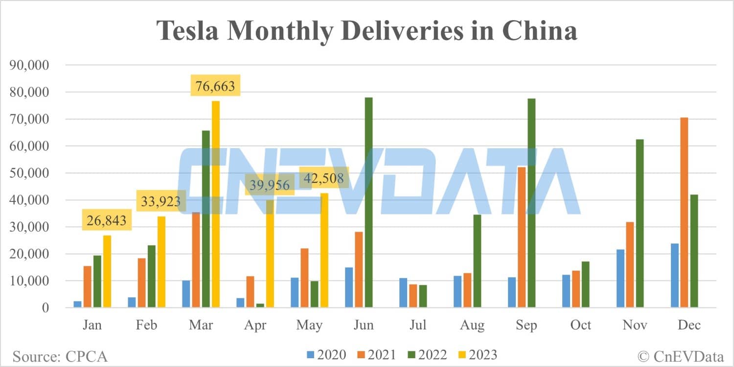 Tesla deliveries in China in May: 42,508