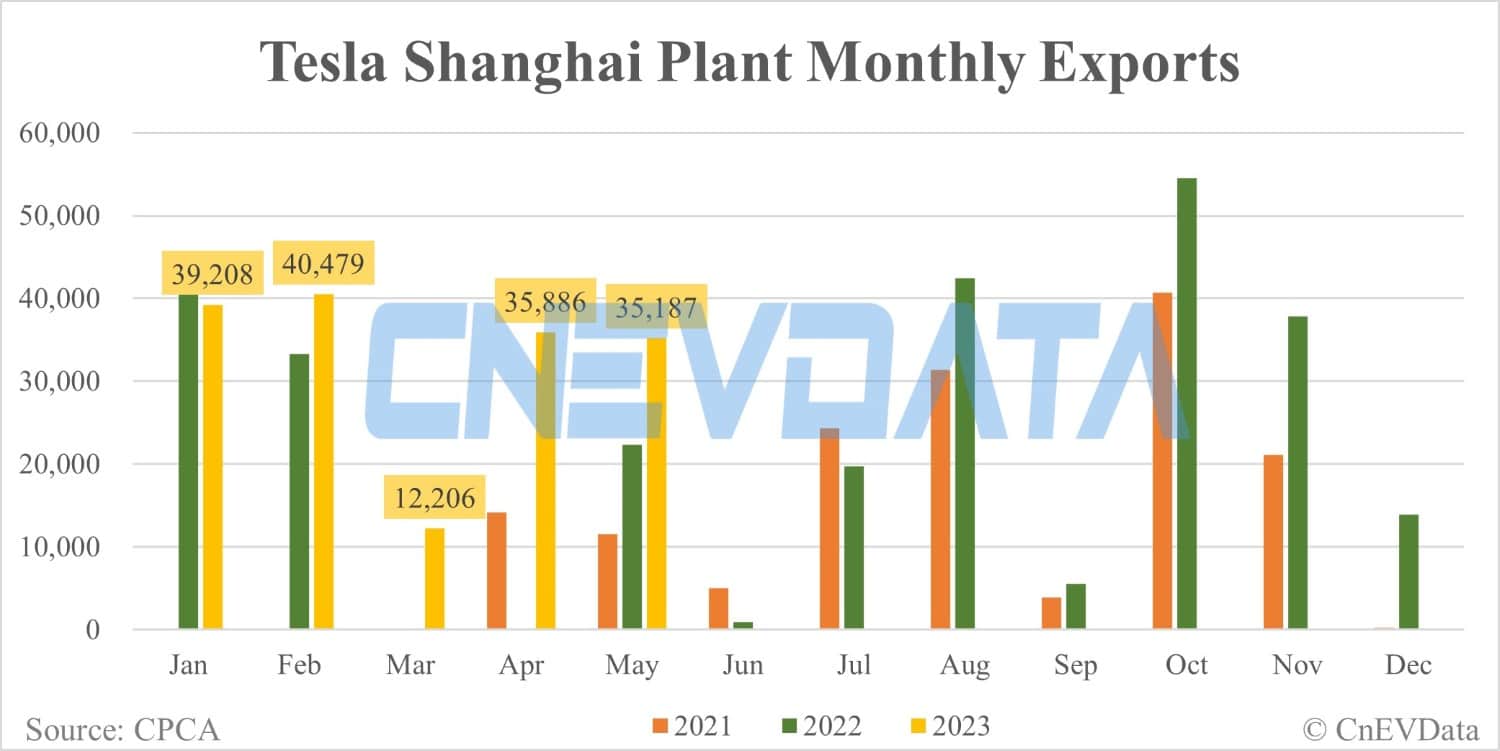 Tesla Shanghai plant exports in May: 35,187