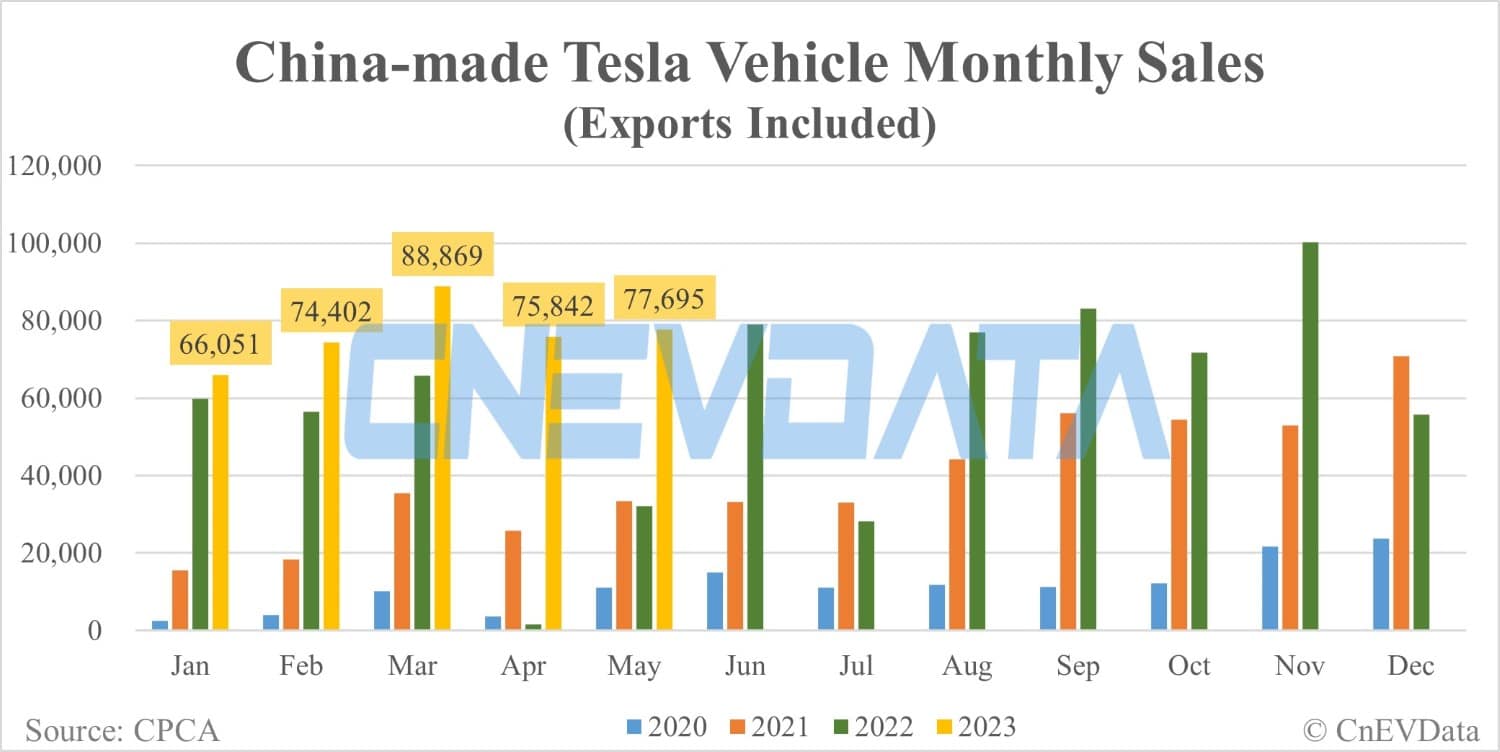 Tesla's China-made vehicle sales in May: 77,695