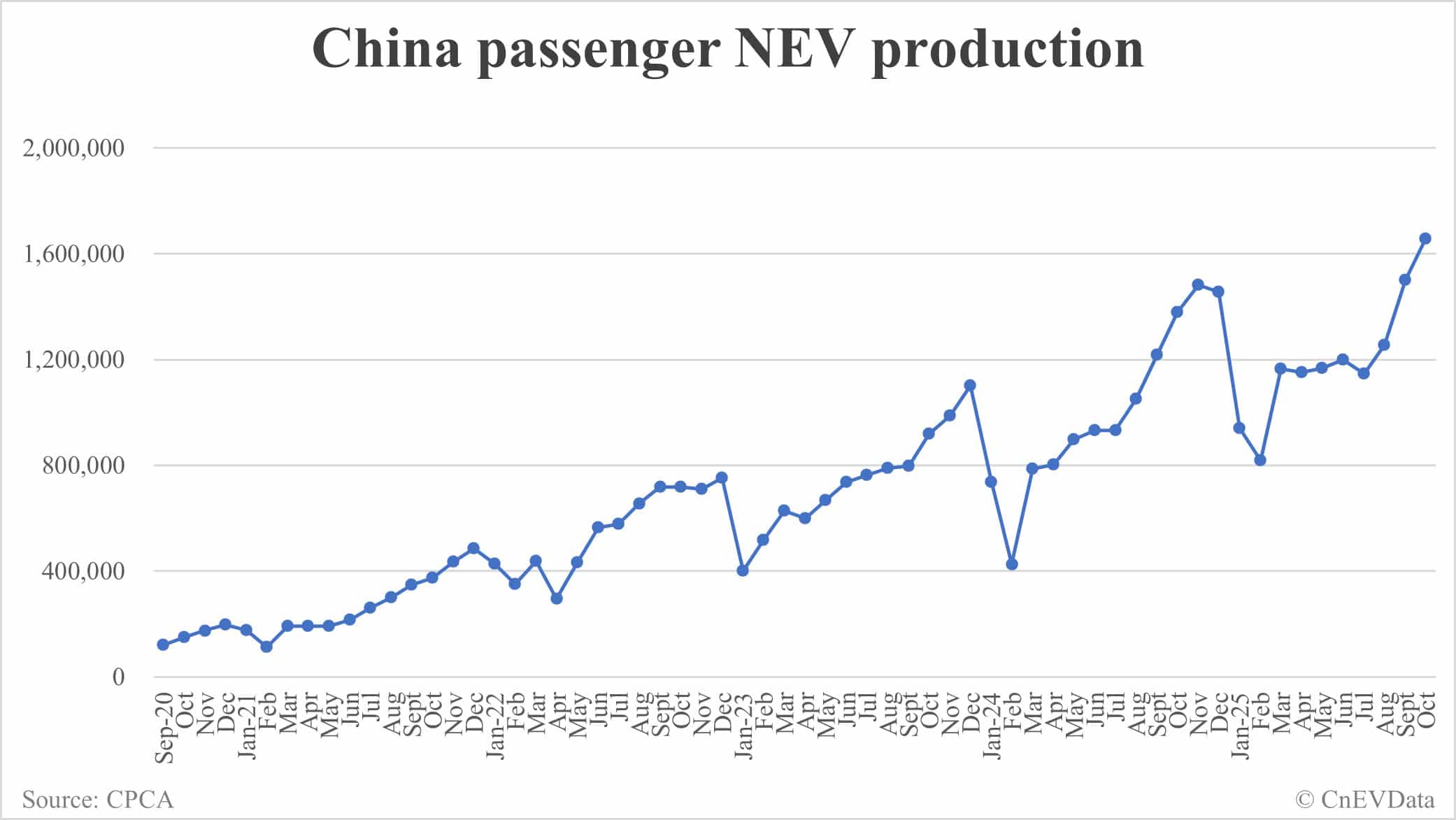 China Oct NEV production data by CPCA: 1,657,000