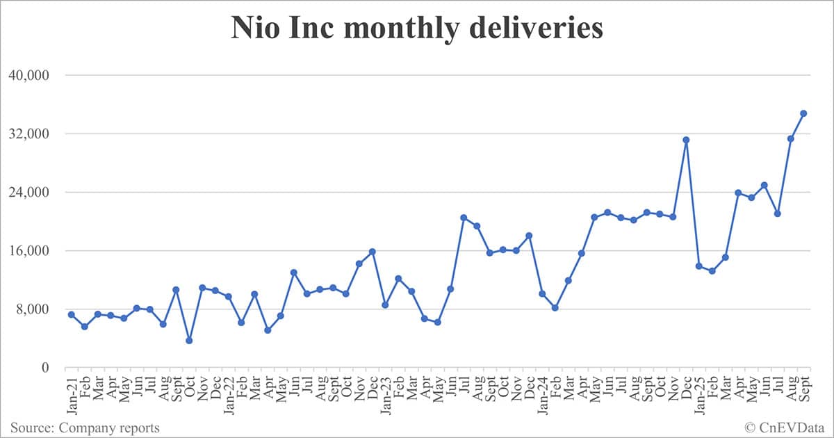 Nio deliveries in Sept: 34,749