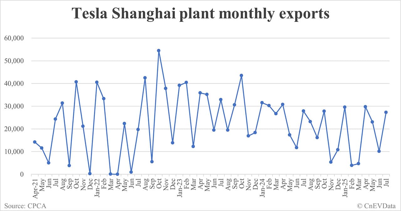Tesla Shanghai plant exports in Jul: 10,115
