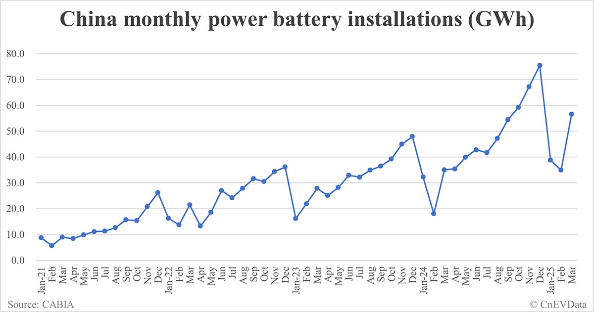 China EV battery installations in Mar: 56.6 GWh