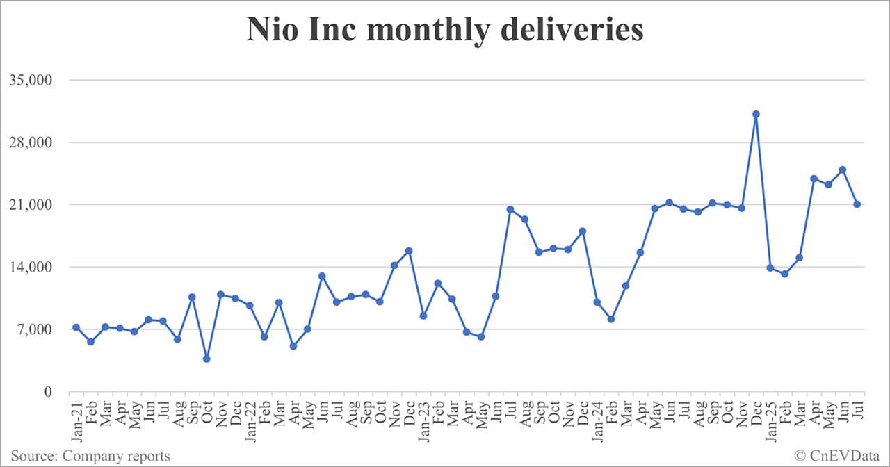 Nio deliveries in Jul: 21,017