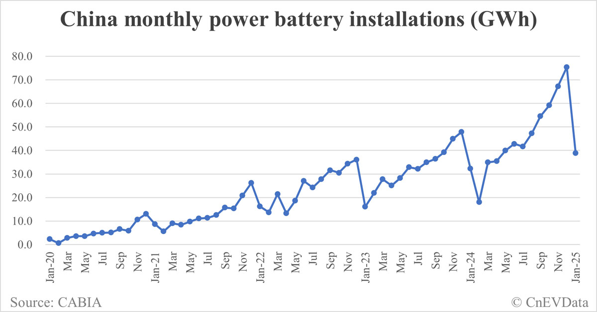 Retail sales of passenger NEVs in China totaled 445,000 units in the February 1-23 period, up 77 percent from a year earlier but down 16 percent from a month earlier.
