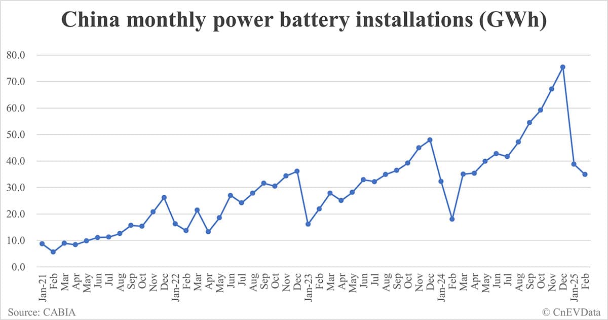 China EV battery installations in Feb: 34.9 GWh