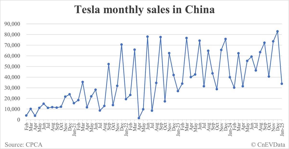 Tesla sales in China in Jan: 33,703