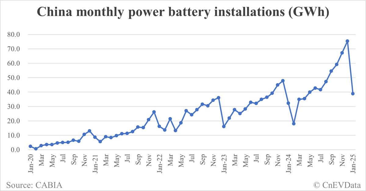 China EV battery installations in Jan: 38.8 GWh