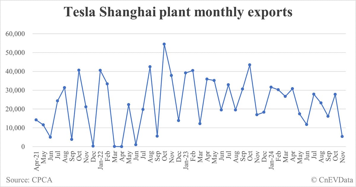 Giga Shanghai exported 248,719 vehicles in January-November, down 23.65 percent year-on-year.