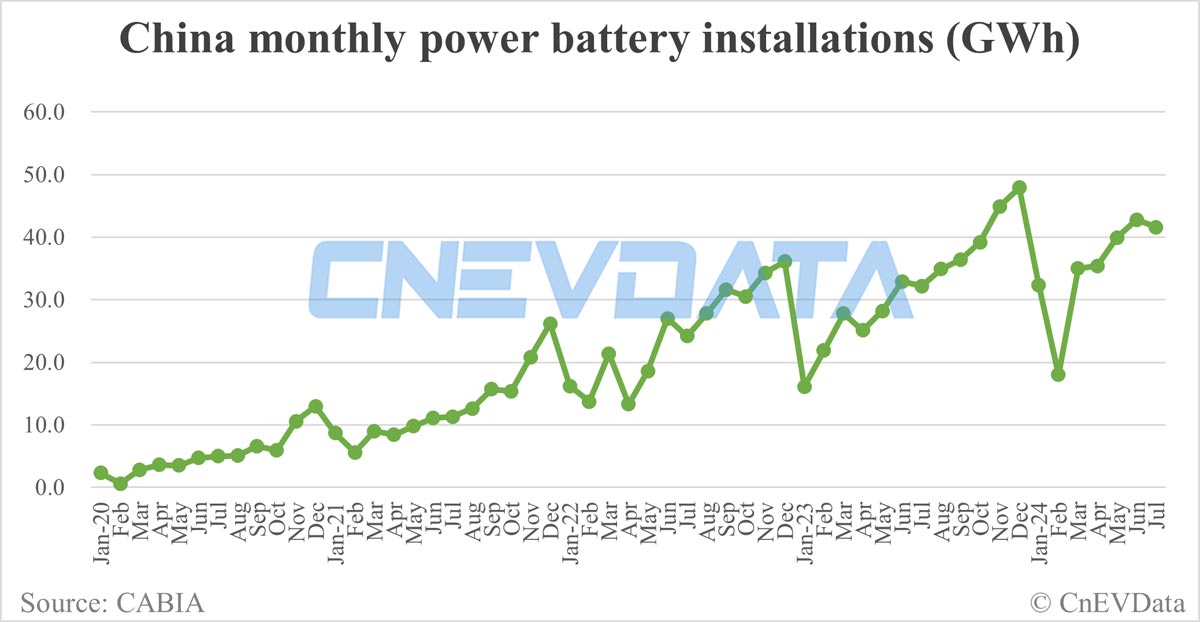 LFP batteries accounted for 30.1 GWh, or 72.5 percent, of total EV battery installations in July, up 39.2 percent year-on-year but down 4.8 percent from June.