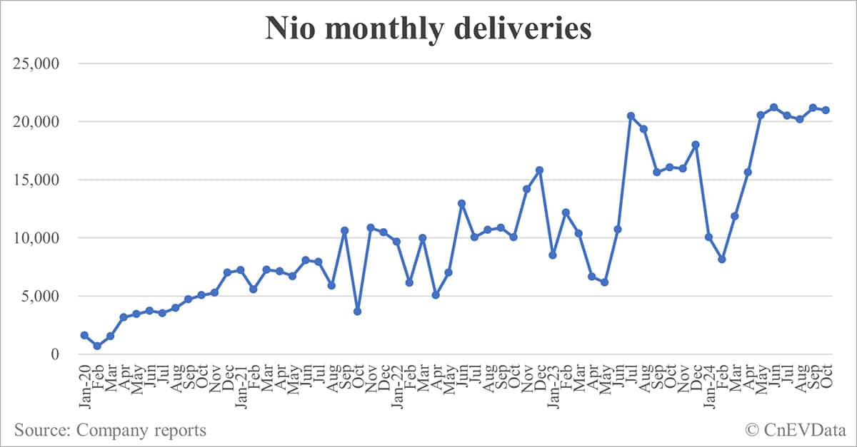 Nio deliveries in Oct: 20,976