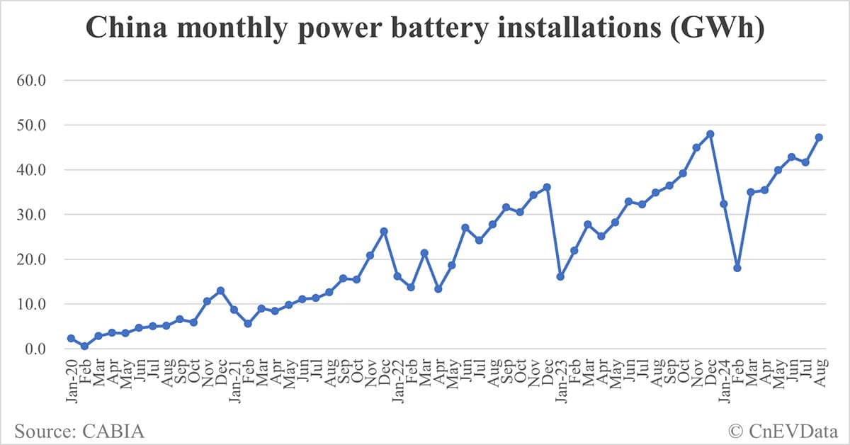 LFP batteries accounted for 35 GWh, or 74.2 percent of the total, up 45.6 percent year-on-year and 16.1 percent from July.