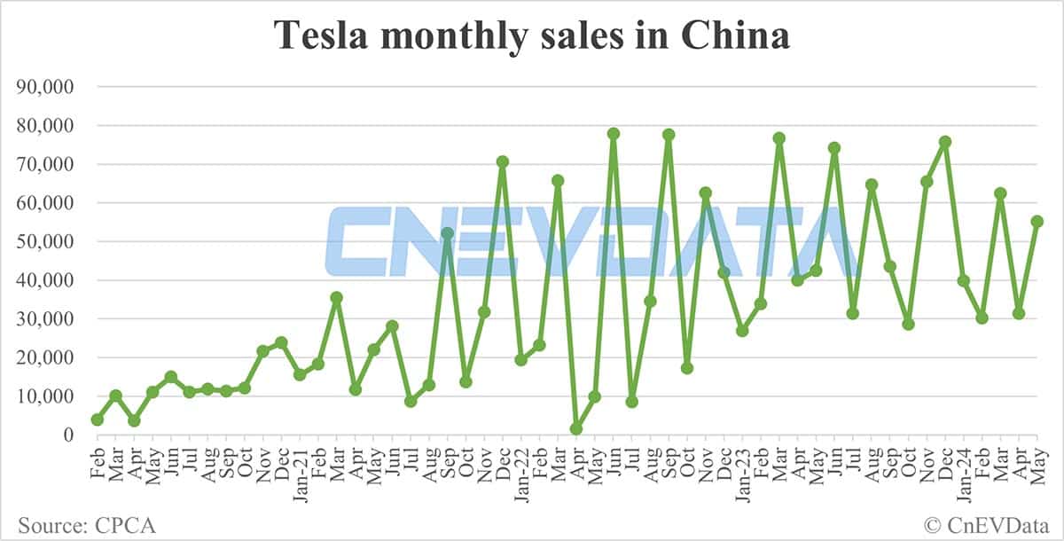 Tesla sales in China in May: 55,215
