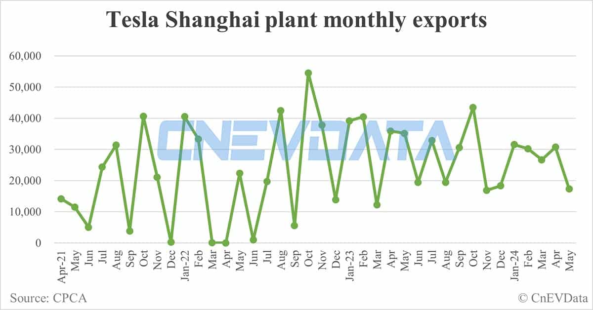 Tesla Shanghai plant exports in May: 17,358