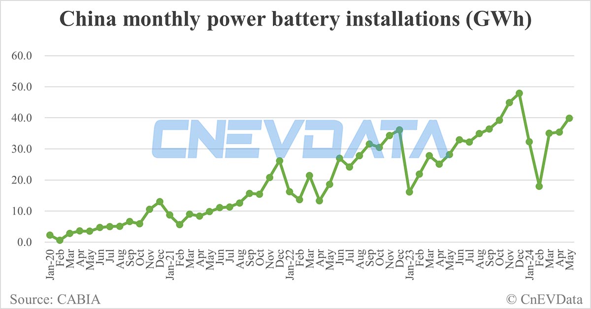 China EV battery installations in May: 39.9 GWh