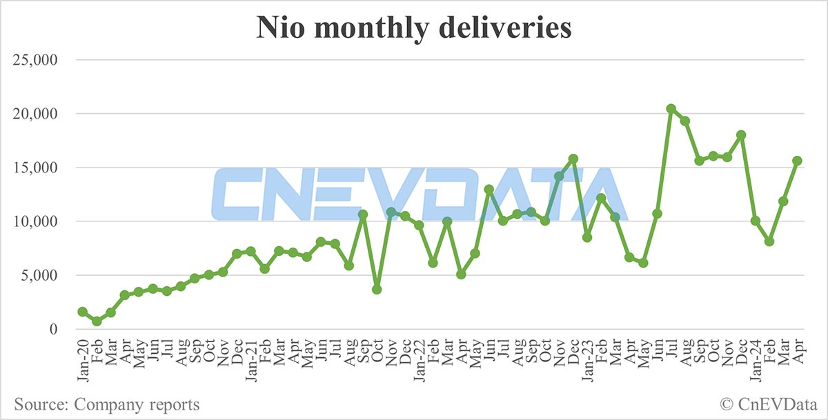 Nio deliveries in Apr: 15,620