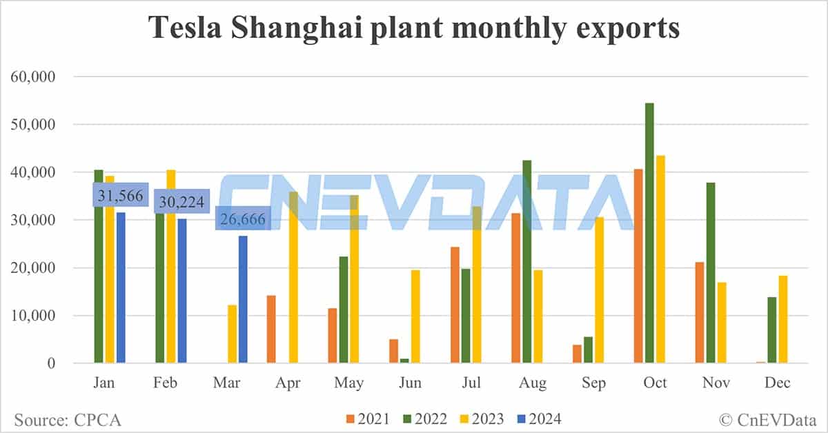 In the first quarter, Giga Shanghai exported 88,456 vehicles, down 3.74 percent year-on-year.