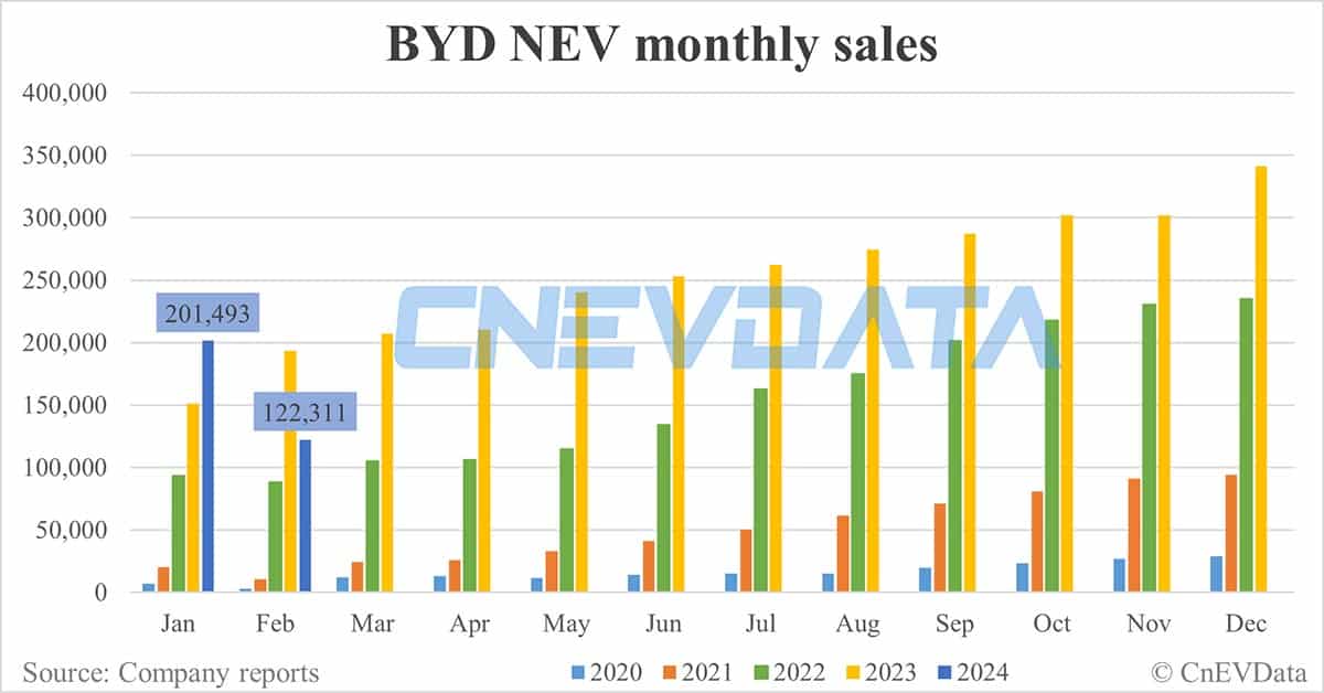 BYD NEV sales in Feb: 122,311