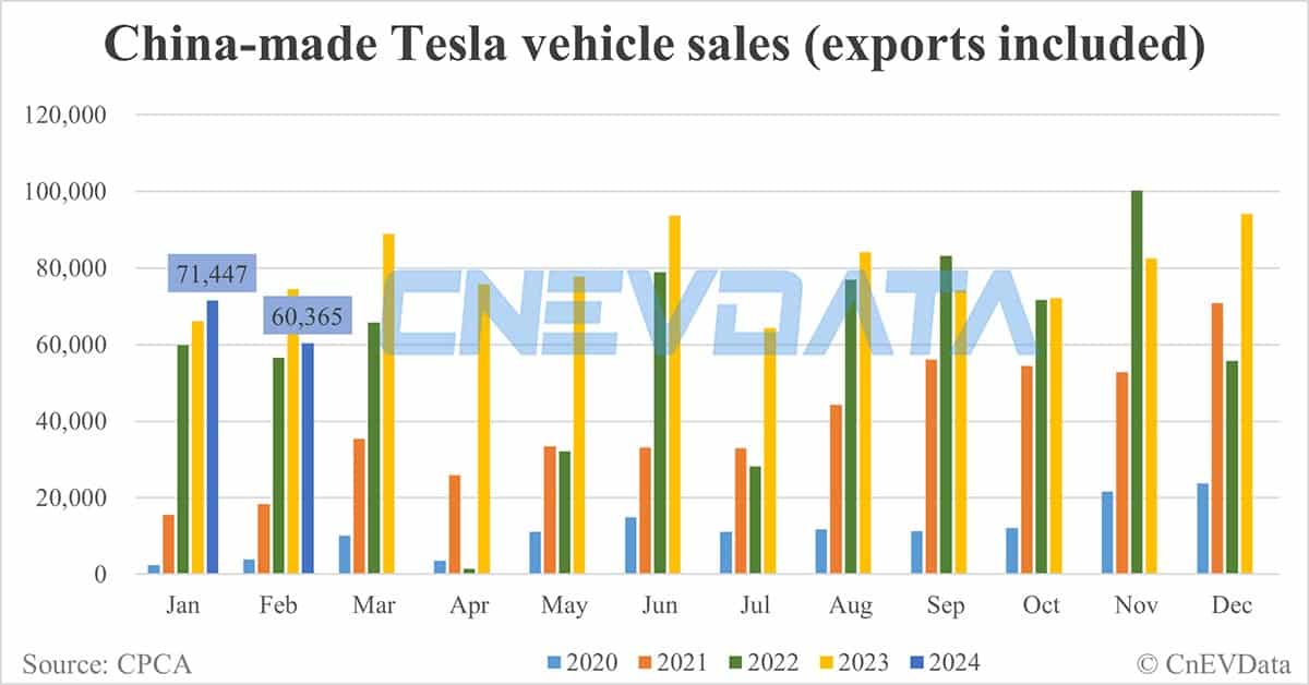 Tesla's China-made car sales in Feb: 60,365