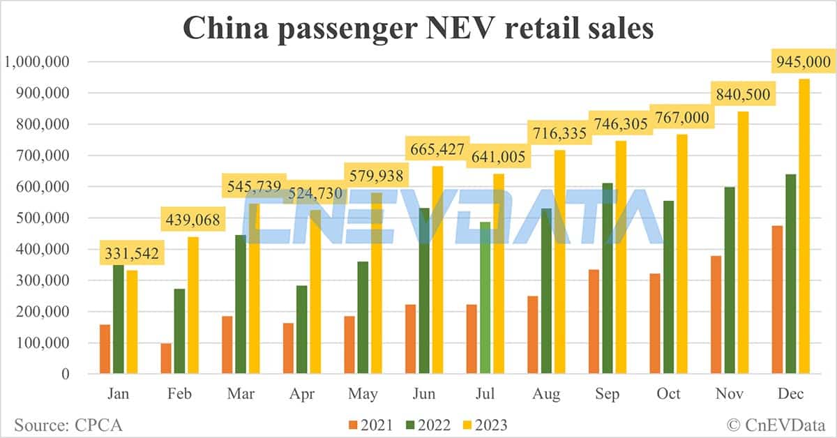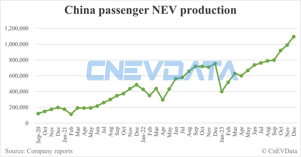 BEVs accounted for 598,000 units of retail sales in December, or 63.3 percent of all NEV retail sales.