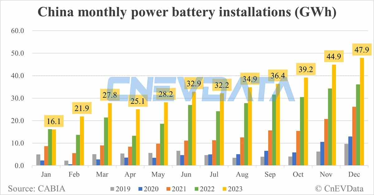 LFP batteries accounted for 31.3 GWh or 65.3 percent of the total installed capacity, up 26.8 percent year-on-year.