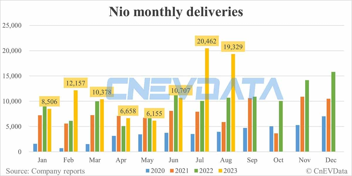 Nio delivered 94,352 vehicles in January-August, up 31.86 percent from 71,556 vehicles in the same period last year.
