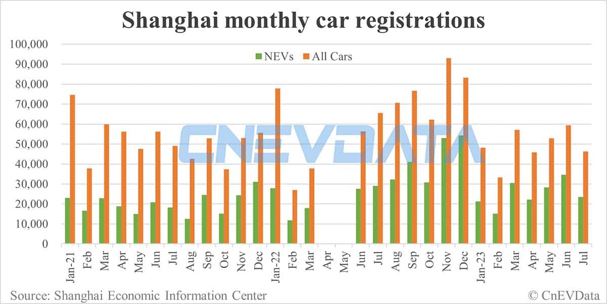 Shanghai NEV registrations down 32.23% MoM in Jul