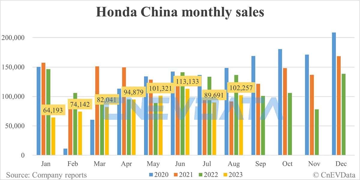 Honda China Aug sales: 102,257