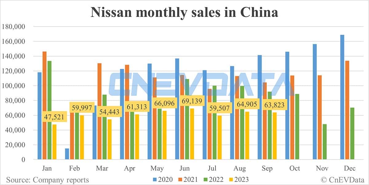 Nissan's Sept sales in China: 63,823