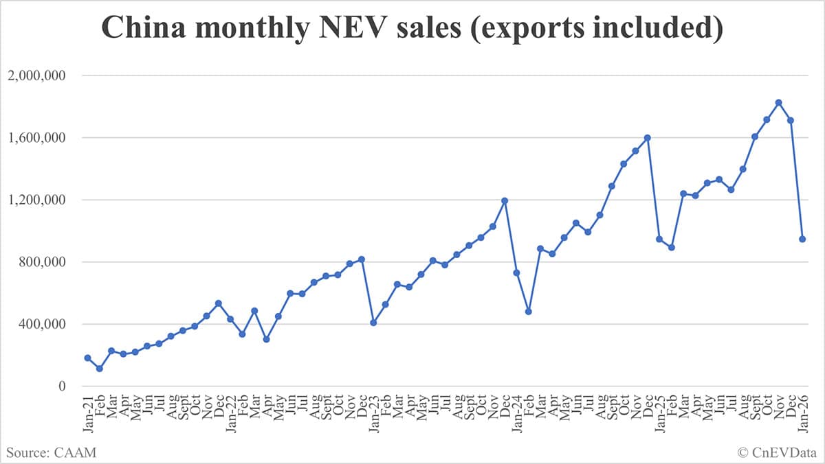 China Jan NEV sales data by CAAM: 945,000